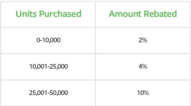 The simplest example of a rebate and most popular is a volume rebate program which rewards trading partners for purchasing higher volumes of a product. Volume incentives — also called tiered incentives or incentive bands — are a great method to help your company increase margins. Instead of offering a trading partner a flat rate rebate, tiered incentives allow you to offer more rebates for more products purchased.