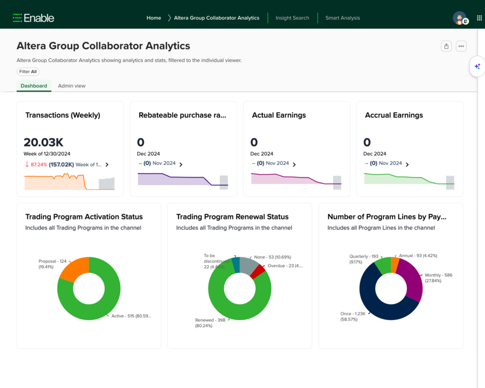 Access insights across every program, partner, and product. With AI-powered analytics, finance, sales, and procurement teams can monitor performance, reduce risk, and drive profitable outcomes without relying on manual reporting.